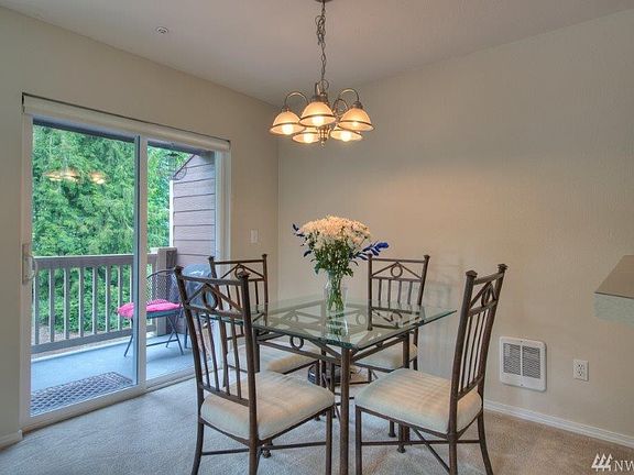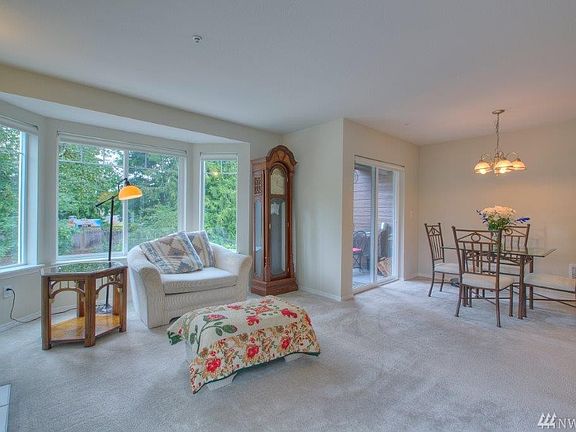 Enjoy an easy-care lifestyle in this apprx 1375 sq ft end-unit surrounded by trees. Great rm concept, cathedral ceilings, light-filled living spaces, frplc, bay window. Fresh kitchen offers tons of cbntry, counterspace, casual eating nook. Three bdrms include master with own bath, balcony; full guest bath; in-unit laundry. All applcs stay! Tandem three-car attached garage with work/storage spaces. Expansive back yard. Low HOA dues include common areas. Convenient to amenities, transit, parks.