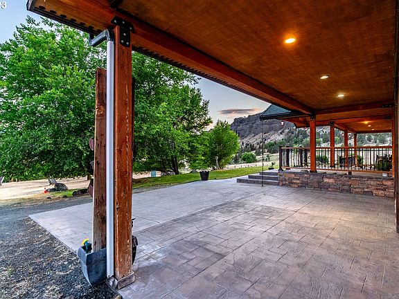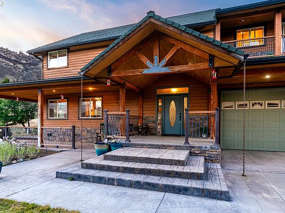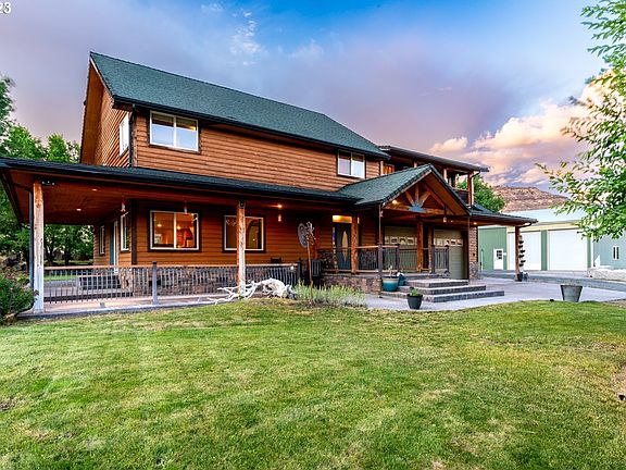 VIEWS FOR DAYS! Custom-built home with breathtaking panoramic views. This multi-level home is approximately 2800 sq ft and features a custom kitchen with extra deep cabinets, cabinet organizers and lighting, walk-in pantry, built in microwave and oven, distressed hickory floors, pine molding, and solid pine doors. 3 bedrooms, 2.5 baths, and a loft/flex space complete with wet bar. Nearly every room offers stunning views of the river and mountains in Wheeler County. Enjoy sunrises and sunsets from the upper decks either off the primary suite or the loft area, and enjoy views of the John Day River from the wrap-around covered patio. Enjoy central heating and cooling with propane back-up. The 72X36/2,592 sq ft shop is very versatile. Presently, one side of the shop is being utilized as a medical clinic, showcasing its adaptability. The other side boasts two convenient bay doors, ideal for creating an excellent work or storage area. Within the shop, you'll discover a thoughtfully designed office space with the comfort of air conditioning, along with a fully equipped bathroom boasting its own dedicated hot water heater. Additionally, ample storage space is available, ensuring all your belongings are accommodated comfortably. Enjoy Starlink internet- transferable to new owners. Plenty of room for RV parking with partial hookups. Pick your own fruit from the mature apple and apricot trees. Don't miss this must-see home with too many extras to list. Experience privacy, tranquility and luxurious comfort in one place. Schedule a showing today!