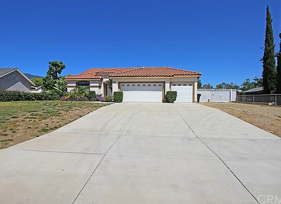 Beautiful custom built single story home with 3 large bedrooms, with an office/ den that can easily be converted to a 4th bedroom, 2 full bathrooms, powder bathroom and just under 2500 sq ft of living space. Upon entering there is a formal dining/ living room or great room with tons of space for entertaining or relaxing. Kitchen is a chefs dream with high end Jenn-Air stainless steel double oven and dishwasher, with microwave and 5 burner cooktop, maple cabinetry, extra shelves, and slab granite countertops. Large bar top for convenient dining, a separate dining area. Family room off kitchen has a fireplace and pre-wired for the TV over the fireplace. Master bedroom suite is huge with a bath with separate shower and soaking tub, double vanity, walk in closet with built in storage cabinets. 2 secondary bedrooms are spacious with large closets that have new beveled mirrored closet doors. Ceiling fans in all the bedrooms. 2 secondary baths have granite counters. Indoor laundry just before you enter the large 3 car garage. The home has travertine tile flooring set on a diagonal through the entire home except for bedrooms and study. High ceilings and dual pane low E windows that let in tons of natural light throughout. Fresh warm beige paint on the walls with crisp white accents. Huge backyard patio cover that is over 50' wide. Backyard is flat &usable just under 1/2 acre, double gates that are just under 14' for easy backyard access and RV storage.Super Low taxes and NO HOA.