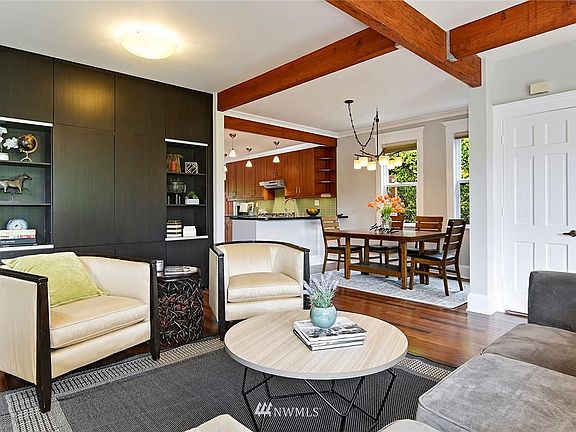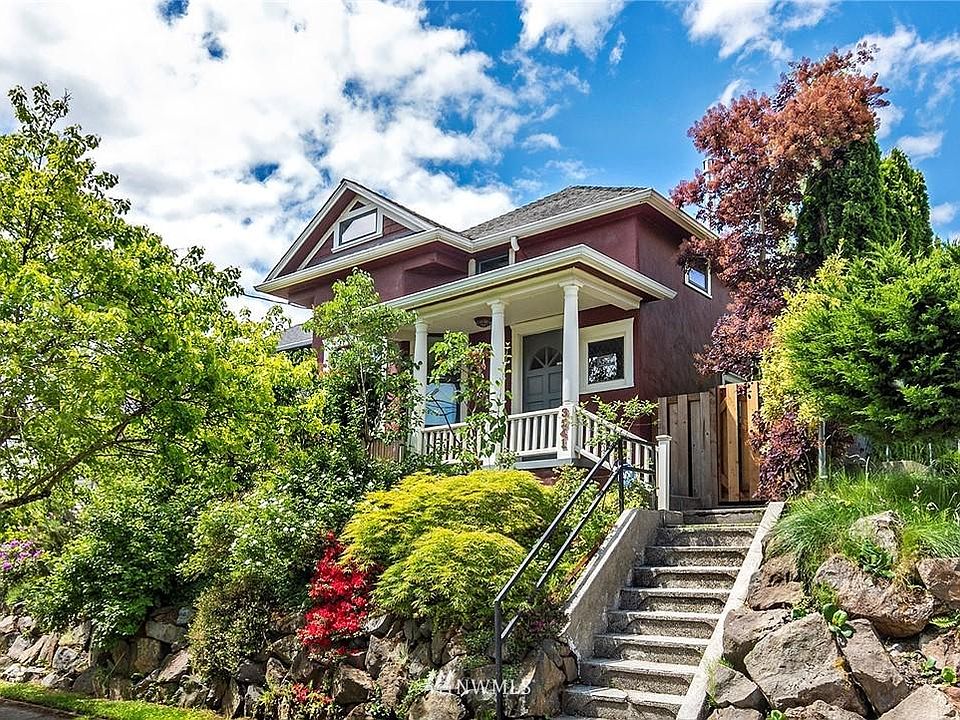 This classic Mt Baker craftsman features charming original details and thoughtful updates throughout. Main floor offers open floor plan with updated kitchen (heated ceramic tile floors, gas stove, paper-stone counters, glass tile backsplash, & stainless steel appliances), exposed beams, modern gas fireplace, guest bedroom or office, and full bath with clawfoot tub. Upstairs boasts additional bedroom + spa-like master suite w/ fir floors, exposed beams, private bath, walk in closet, gas fireplace, & private balcony. French doors from kitch lead to deck overlooking fully fenced backyard: garden beds, potting shed, private patio w/ firepit, alley access. Steps from Mount Baker park, Clubhouse, Mioposto, Light Rail, beach and more.