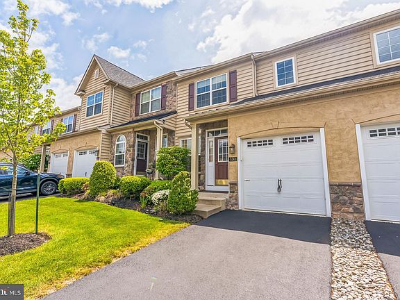 Modern townhome for sale in Buckingham Twp. This home is located in the prestigious Heritage Center community. Home boasts of beautiful curb appears. Walk past front of home's beautiful stone veneer and through the front door with beautiful hardwood flooring throughout and crown molding throughout entire main floor living space. There is a formal living room on left. Walk back to spacious formal dining room with beautiful chair rail on right perfectly situated off large modern kitchen which contains 42" expresso cabinets, all stainless steel appliances, tile back splash and granite counter tops which also carry across large island. Kitchen also contains sliding doors which lead to backyard. Spacious open family room with beautiful plantation shutters and gas fireplace which is the center piece of room and is located directly off kitchen ideal for entertaining. Entire home contains recessed lighting throughout in addition to the plenty of natural light the home offers. First floor also contains a powder room and inside access to attached garage. Hardwood flooring carries upstairs to hallway and throughout all three spacious bedrooms. Owners suite contains spacious design with tray ceiling and upgraded modern ceiling fan light fixture, TWO large walk-in closets with built-in custom shelves and huge bathroom with fully tiled shower, soaking tub, tile floor and double vanity with dual sinks. Upstairs also contains two spacious guest bedrooms, full hall bathroom and conveniently located laundry area. Walk downstairs to fully finished spacious basement. This home is the largest model in the community. Townhome includes various amenities including access to a clubhouse available for large parties, community pool, tennis court, and a well-equipped gym. Conveniently located to 202 and major highways for an easy commute to NJ & NYC. Additionally you have train stations in both Doylestown and Warminster for an easy commute into Center City Philadelphia. Also minutes from food shopping, hospitals, variety of fine dining options, boutique shops and historic attractions including Doylestown Boro & New Hope Boro which are only minutes away. *** Award Winning Central Bucks School District *** Home is the perfect balance of luxury and low maintenance living.