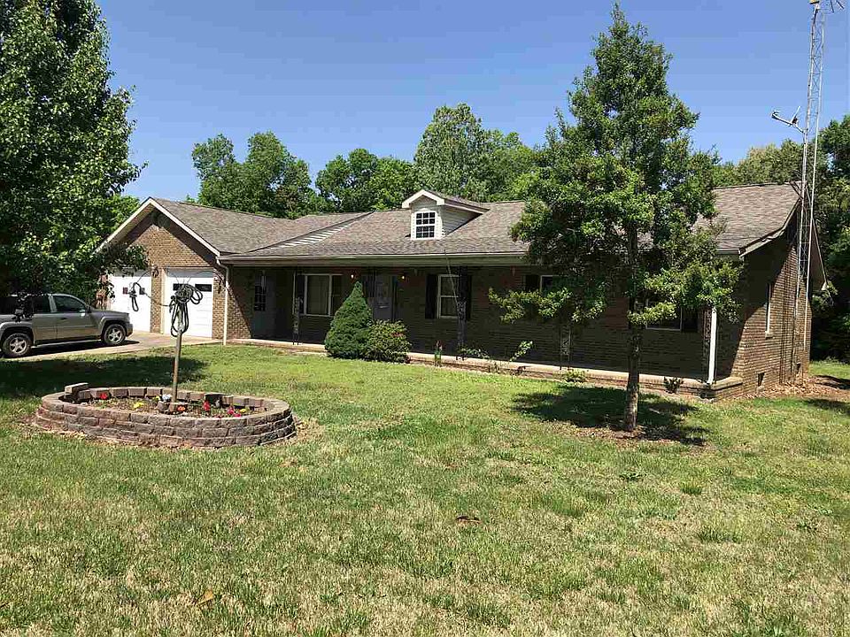 This beautiful brick home sits on 2.8 acres and is located minutes from KY Lake. It offers four bedrooms, two of those being master suites. There is a large office that could also be used as a bedroom. Beautiful kitchen with lots of cabinets and a pantry. The basement is approx. 1400 sq ft and could easily be finished to increase living space. There is 48x30 detached garage that has concrete floor and electric. The above ground pool is heated and has deck area. So many extras with this home!