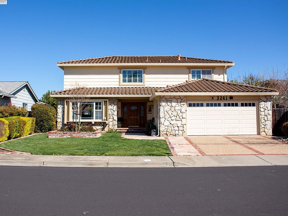 Gorgeous, desirable 2-story home in prime court location with path leading to Pleasanton Meadows Community green belt. Featuring 4 bedrooms (possible 5th) and 3 baths with 1 bedroom and full bath downstairs. Updated interior painting, wood flooring, crown molding. Newer HVAC, furnace and water heater. Updated eat in kitchen has recessed lighting, granite counters, wood floors and SS appliances. Beautiful raised separate dining room, dual pane windows, wet bar in sunken oversized family room adjacent to kitchen. Upstairs has the remaining 3 bedrooms including beautiful master retreat and 2 full bathrooms with separate vanity areas. Beautiful landscaping with brick and exposed aggregate walkways, patio, and planters, flowering bushes, grass area, trees and other vegetation. Park-like east facing backyard with stunning waterfall and pond. New fence on the right side. Tile roof. This home is a part of Pleasanton Meadows Cabana Club. Excellent location close to top rated Pleasanton schools, several parks, easy access to 580, 680, BART, & Stoneridge Mall. THIS IS A MUST SEE!!