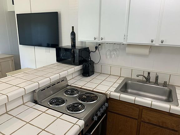 The studio is off the garage of the main house. Full kitchen with separate bedroom with shower. Our renter has not moved out so the studio is not empty.