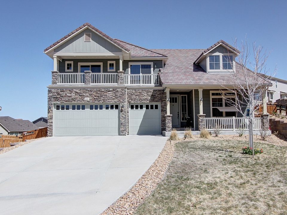 Mountain Views! Beautiful 2-story, single-family home nestled at the end of a quiet cul-de-sac, and backing to Open Space trails! 3-car garage and covered porch welcome you to your 5 bedroom home. Scrapped hardwoods and trowel paint throughout main level: private Study/Den with double French doors, formal Dining Room, Family Room with gas fireplace and eat-in Chef's Kitchen with granite-slab countertops, stainless-steel appliances, double gas range, and large pantry! Guest bedroom on the main floor with private bathroom! Upper level has a spacious loft with built-in desk, 2nd Laundry Room, and 4 bedrooms. Master features 5-piece bathroom and huge walk-in closet. 2 Secondary bedrooms has private access to covered patio, and mountain views! Back yard is great for kids and pets to play, or sit on the front porch while they ride their bikes in the cul-de-sac! Fabulous home! Fantastic neighborhood and location! Call now to schedule your personal showing!
