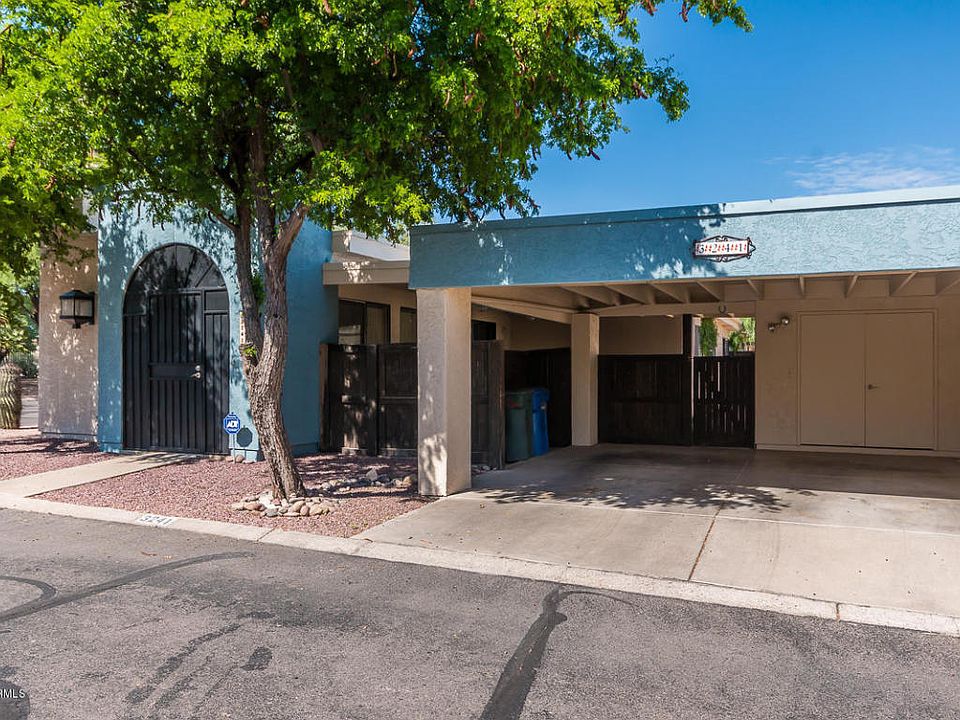 3 bed end-unit within this beautiful well-kept Lazy Creek neighborhood. Corner lot offers additional privacy in addition to located only steps from the community, park like setting pool. Dual-pane windows, new granite counter tops, just installed in the kitchen and both bathrooms, new carpet in bedrooms. updated baths with new sinks and fixtures. Stainless steel appliances, all convey. Great room floor plan with cozy fireplace and sliding doors to an outdoor patio. Living area with fire place, 2-Car carport w/large storage space. Great midtown location near shopping, Lighthouse ''Y'', McCormick Park, Rillito River-walk trails, medical facilities and transportation.