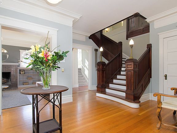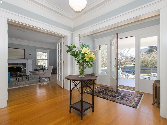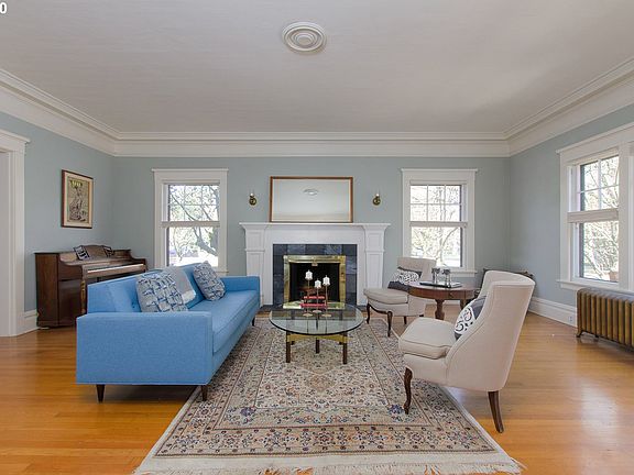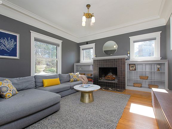 Amazing Value! 1911 home on dbl lot in desirable Irvington Dist! Main flr has 2 fplcs, cozy media rm, LR w/beautiful blt-ins, & Dr w/elegant box beam ceiling & 1/2 bath. Dramatic staircase carries you to 3 BDs & full bath, in addition to mstr BD w/stylish Gucci wallpaper & stunning ensuite bathrm oasis w/heated flr. Top flr well-lit art studio or rec rm w/ 1 BD & full bath. Bsmt was air b n b & incl. full bath & 3rd fplc. 2-car GAR w/Tesla charger. [Home Energy Score = 1. HES Report at https://rpt.greenbuildingregistry.com/hes/OR10082195]