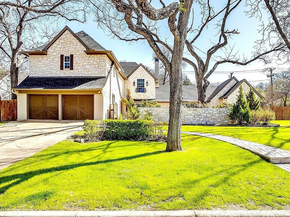 Stunning newly renovated home with grandiose curb appeal, nestled in highly desired Tanglewood! This 5BD-4BA luxury home boasts both a beautiful courtyard and a bright, elegant interior design! Upon entry, you're greeted with new nailed-down hardwood floors throughout! Featuring 2-living areas, spacious dining, a study-office, and oversized covered patio with a built in grill & stone fireplace. Primary en-suite showcases a dual shower with barreled ceiling! Kitchen is furnished with new SS Viking appliances and hideaway microwave! Upscale quartz counter-tops accentuate all bathrooms and kitchen. The second level of the home offers a large rec-room and nursery or fitness room. Stone accent walls, custom built-ins, & natural lighting highlight this home. Sizeable lot equipped with 3-outdoor seating areas. Walking distance to TCU, close to Colonial Country Club, Chisholm Trail, I20, I30, and much more. Zoned Tanglewood Elementary.
