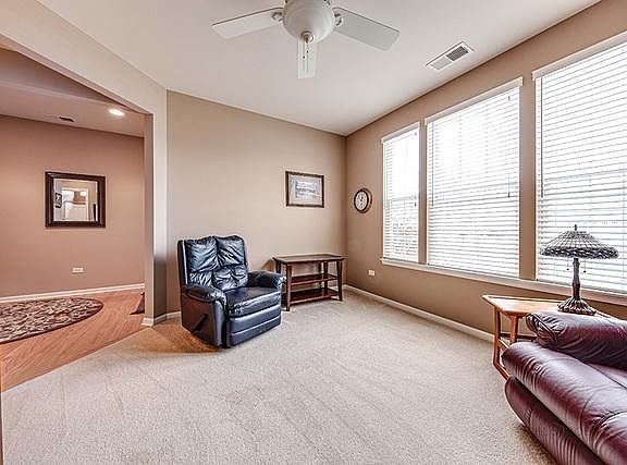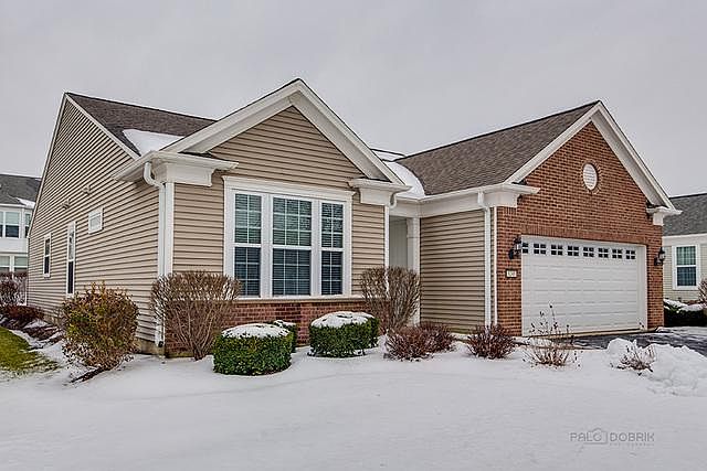 Ready for you to move in and make it home! Don't miss your opportunity to own this desirable Wright model home in Grand Dominion. Worry-free living in active 55+ community; enjoy everything from the walking trails, club house, pool, tennis courts and so much more! Featuring a bright and open concept floor plan this home provides the space needed to entertain family and friends. The living room and adjoining dining room flow seamlessly into the kitchen, so your conversations won't skip a beat when it's time to start cooking dinner. New memories are sure to be made in this kitchen offering a myriad of custom Maple-Toffee finished cabinets with crowned uppers, ample counter space, closet pantry, quality stainless steel appliances and separate eating area. An added bonus is the sunroom, which provides a more intimate setting. Picture yourself sipping on your morning coffee here or cozying up and enjoying a good book with a loved one. Open the slider to allow in fresh air or step out on the slider to your patio where you can relax, unwind, and just enjoy the night sky. Head back inside to the main bedroom showcasing a large bay window allowing in ample natural light, vast walk-in closet and private ensuite with dual sink vanity, soaking tub and separate shower. A Second bedroom with generous closet space, full bath, laundry room and den (an ideal space for a home office) complete this home. Two car attached garage has 4' garage extension and energy package (insulation). This is the one for you, schedule a showing today.