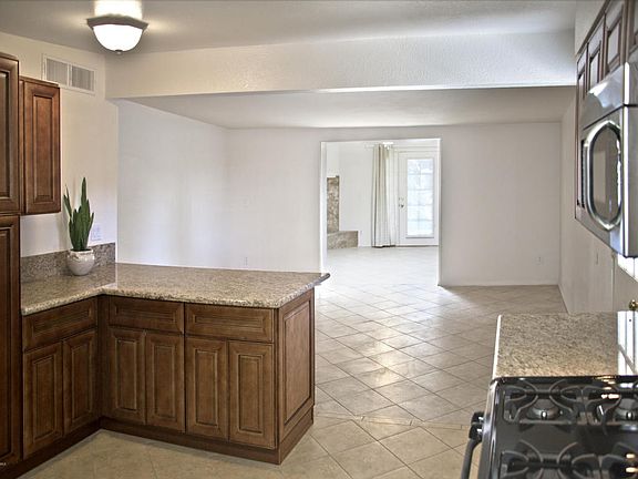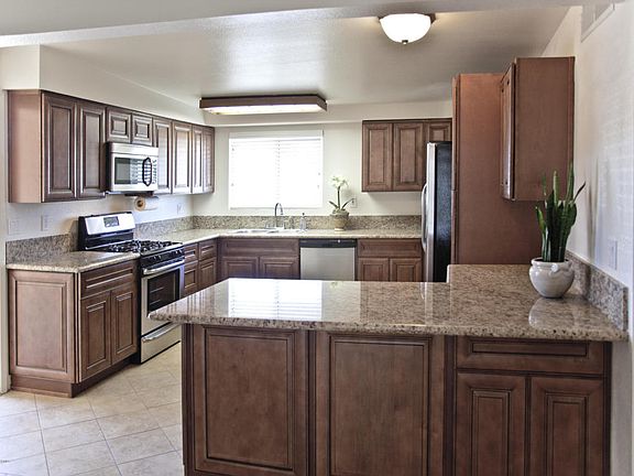 Fabulous new kitchen with stainless appliances and granite counter tops. Home was added onto by previous owner and has extended great room with fireplace, separate laundry room with lots of storage. Master bedroom was also extended. The bathroom was remodeled and a walk-in closet with storage was added. Storage area in front of the carport extends to the backyard with a door, storage cabinets, water and electricity. On the north side of the house there is an addition storage area. Covered patio with 180 degree mountain views. Room for RV parking in front of the gate or behind the gate. Close to park and schools. 3 sky lights.