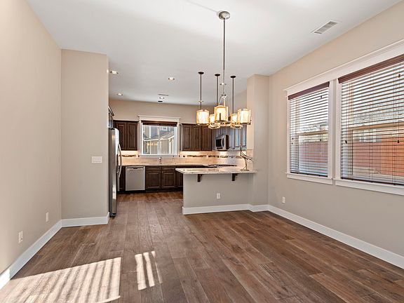 Backing to the forest, this totally upgraded townhome has a master on the main with lovely fireplace, junior master upstairs with private bath as well as a third bedroom and bath. The open loft with custom iron railing provides a great space for everyone separate from the sunny living area. The kitchen has upgraded cabinets, counter tops and appliances. Downstairs is all lovely laminate wood floors with upgraded carpet upstairs. The yard is private with easy care landscaping and a full view of the forest.