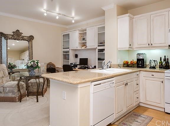 Highly upgraded Carlton Arms model located on the second floor within the extraordinary community of Watermarke. This one bedroom home features lots of natural light, custom cabinetry in kitchen, dining & laundry area, Whirlpool appliances, crown molding, custom carpet, custom paint throughout and customized European closet at bedroom. Experience a sophisticated lifestyle in one of the best condominiums in Orange County! The Watermarke Community provides you with a bounty of amenities such as a concierge service, top-of-the-line fitness center, and movie viewing room, pools, spas, and basketball & tennis courts.
