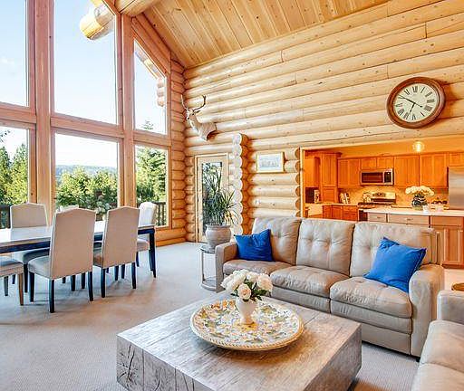 Stunning secluded log house (lodge) boasting huge logs and mountain views on 4 acres. Modern updates throughout such as bathroom remodels, Kitchen countertop, new appliances, carpet, light fixtures, driveway, landscaping and added patio. Upstairs features a separate office, arts and crafts room and loft. The property has a large deck which wraps around the house above the trees with beautiful scenic views. Nearby is Snow Valley Ski Resort and an equestrian community with renowned Coyote Rock, Exploration Trail and the National Forest right outside your front door. All bedrooms are on the ground floor with level entry. This is one of the very few truly custom log homes on the mountain, so don't miss out on this incredible opportunity. Other amenities include: Radiant floor heating Enclosed dog run Jacuzzi 4.2 acres of rolling wooded forest Renter is responsible for all utilities.