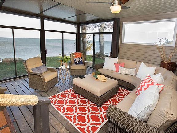 Prepare to be Moved!..Into this beautiful Lakefront home with direct access to Lake Erie! Walk through the front doors and you'll immediately appreciate the open floor plan with plenty of space to entertain family and friends - they'll never want to leave! The formal living and dining rooms have hardwood floors, neutral color palette and cozy fireplace. The galley style kitchen complete with granite counters, stainless steel appliances, classic subway tile and breakfast bar- great spot to grab a quick meal! A wall of cabinets with lots of storage and a place to display family heirlooms leads you to a family room with breathtaking views of the lake. This family room with vaulted ceilings, fireplace and access to the deck and backyard, is the perfect place to sit and relax. The master suite has lake views, cove ceilings and an en-suite bath with marble counters, tile back splash, updated lighting and finishes. Two additional bedrooms share a hall bath. The lower level adds living space with a rec room, guest room with full bath, laundry space and workshop. Lots of storage -not only closets and cabinets but also a crawlspace under the family room and large floored attic over the 3 car garage. So much to enjoy with the outdoor space - three season porch, deck and backyard with steps leading down to the lake! Park next door gives you lots of green space. Recent updates- furnace, sprinkler system, roof, gutters, added to break wall (all in last 5 yrs). Make an appointment today!