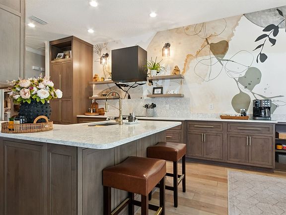 Welcome to this beautifully reimagined home in desirable Flora Parke. This residence combines thoughtful design w/top-to-bottom upgrades completed between 2023–2025. Step inside to a stunning renovation enhanced by abundant natural light. At the heart of the home is the showpiece kitchen designed to impress & inspire, w/quartz countertops, a sleek induction range, custom vent hood, designer lighting & a striking custom mural imported from the U.K. The dining room features custom wine pin storage, while the living room is anchored by built-in corner shelving & a dramatic chandelier—offering an open flow perfect for entertaining. Thoughtful custom touches throughout add texture & dimension. The owner’s suite offers an updated spa-like retreat, plus a custom-finished walk-in closet. Every detail has been addressed. Even the mudroom/laundry room is functional & stylish, w/custom cabinets, shelving & statement wallpaper. Outside, the upgrades continue: a new roof, bamboo shades on the lanai & an extended paver patio for seamless indoor/outdoor living. The irrigation system runs off its own private well w/new pump —keeping your lawn green while keeping water bills low. The garage is equally impressive, w/a retractable screen, shelving, work sink, & multiple extra outlets for the tool lover or car enthusiast. This pristine home sits on a spacious lot w/room for a pool & is beautifully landscaped for curb appeal. With no CDD fees, low HOA & turnkey updates throughout, it provides both value & peace of mind. Whether you’re hosting friends, enjoying quiet evenings under the stars, picking fresh lemons from your Meyer lemon tree, or simply appreciating the thoughtful details, this property is more than a home—it’s a lifestyle.