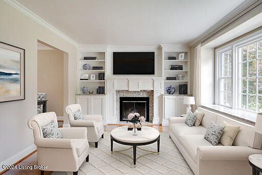 Audubon Park, celebrated for its tree-lined streets, diverse architecture, nationally acclaimed festivals, most notably the Dogwood Festival, and 5 parks centrally located around the neighborhood, your next home awaits. This Dutch Colonial revival has been meticulously updated, while retaining the charm and period details we all appreciate about an older home. Sitting on a commanding lot, just over a 1/4 acre, with a welcoming entry, adorned by mature landscaping, this home is graciously inviting. Stepping inside the entry foyer, you're greeted with a beautifully crafted and restored staircase, with wrought iron balusters, oak treads and a detailed, rich stained newel post. Extensive mill work in the light-filled living room, with crown moulding, custom built-ins flanking the fireplace, adorned with a granite hearth. The formal dining room is perfect for entertaining, as it is open to both the kitchen and living room, and offers a door leading to a concrete patio. Updated cabinets in the kitchen offer storage space abound with the floor to ceiling pantry. Tucked away from the main living areas you'll find the guest half bath. Continuing down this wing is the first floor primary en-suite, an absolute rarity for this genre of home. With its own separate HVAC, this is a welcome retreat. Large tiled walk-in shower, with frameless glass doors, built in storage and custom vanity. Upstairs you'll find 3 generous additional bedrooms, some with additional custom built-ins, share an updated bath, with cultured marble surround, tiled floors and dual sink vanity. The finished lower level is perfect place for an additional family room/theater/media room, complete with an amazing children's play room, that all kids are sure to love. The backyard is a tranquil space, with large concrete patio for grilling and entertaining, and a large tool/utility storage garage. With an unbeatable location, many updates, including replacement windows, newer roof, HVAC, water heater and double width concrete driveway, 3242 Cross Bill Road is definitely a place you'll want to call home. Schedule your showing today!