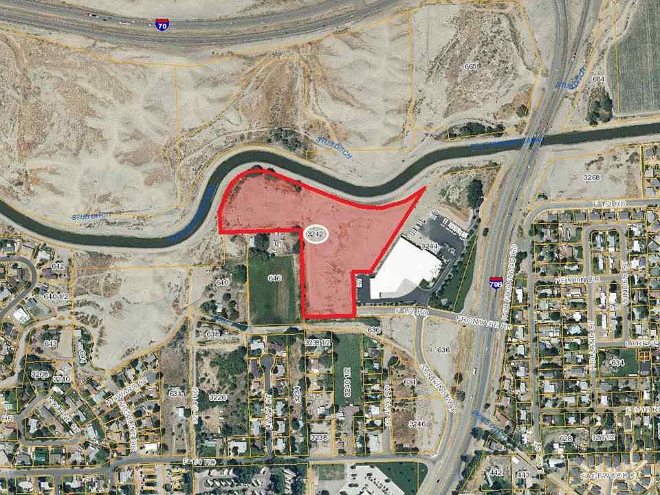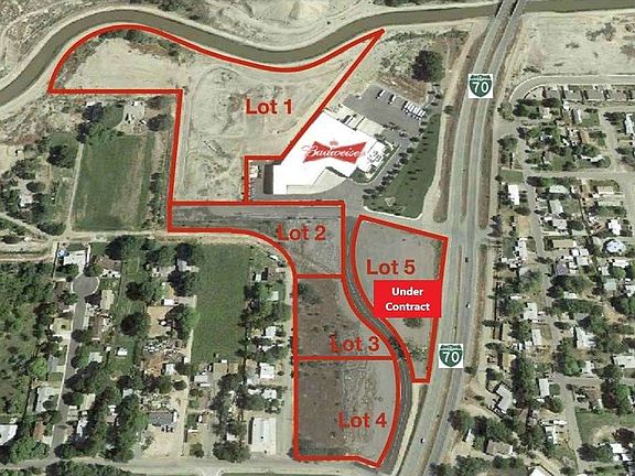 Great development opportunity at the first available access off I-70 at Clifton interchange. 9.88 acres commercially zoned. Commercial tract adjacent to Budweiser Distribution, land sits on North side of F 1/2 rd and goes to canal. High building site with great views, could be hotel, restaurant, etc. Good grade variances for different types of use! Great location for a commercial center, distribution center or any highway-oriented business use. Some utilities in place. Adjacent to I-70 business loop. This parcel (parcel #1) is also available with parcels 2-4 at a substantial discount (MLS# 20202268). Agent is related to the seller.