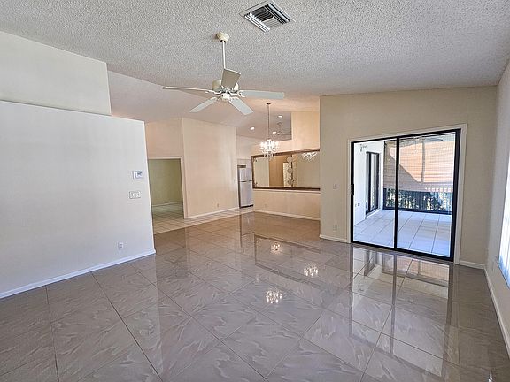 Your Florida sun filled life is here,7 miles from the beach, tons of shopping and dining, This immaculate second floor condo features vaulted ceilings and one of the large floor plans in this actives 55+ community. Tiled through except for 2nd bedroom. Two French doors offer entry into the third bedroom or office. The spacious main bedroom features a large walk in closet, double sink vanity, private bath and commode room with separate shower. The laundry room has shelving and a full size washer and dryer. The light and bright kitchen has a big pantry and opens into the Florida room which has sliding acrylic panels and overlooks the garden and adjacent golf course. Centrally located close to shops, dining, the beach and Palm Beach Internationaal Airport. This freshly painted residence is move in condition. Park Pointe boasts a heated salt water pool, exercise room, pickleball, tennis, sauna, billiards and more. HOA include cable, internet, water, and more. Small pet welcome. The water heater was replaced in 2021. Sellers motivated, bring all reasonable offers!