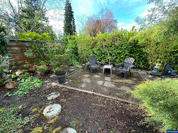 Large lot, fully fenced, with a beautiful mid century feel, with oak floors, wood burning fireplace, many updates: Roof, tile kitchen and bathroom floors, lighting, bathroom remodel, custom wood countertops. Two large bedrooms, the garage is converted to a shop, but could be taken down. ADU in the back , studio room, with kitchen, bath, and living /bed studio opoen room, ready to be rented or in law space. Beautiful landscaped peaceful front yard.