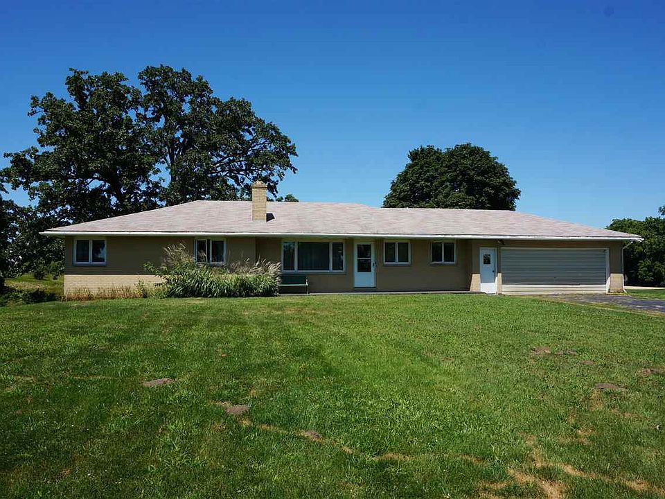 All brick 1600 sf ranch on 5.7 acres. Located South of Stillman Valley in the country with nice views and mature oak trees. 3 BR, 2.5 BA with eat in kitchen, separate family room and living room, 1st floor laundry and small office space. 2 wood burning fireplaces. Shaded backyard and large 15x15 sun porch. Some finished space in basement. Property is not set up for animals currently but has endless possibilities for pastures and outbuildings to be added. Zoned ag.
