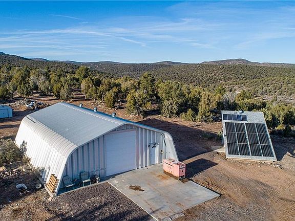 4 bedroom 3 bath off grid home on a private well with solar and back up generator! This home offers 3,286 sq ft of living space on 39.37 acres at 4,800 ft elevation! Other important features and upgrades include: *Open floor plan *Vaulted ceilings *Stainless steel appliances *Trash compactor *Walk-in pantry *Kitchen island with bar *Cherry wood cabinets *Antique Pot Belly stove *Formal dining room with french doors *Game/ media room features built in surround sound, 10ft bar w/ sink, wine cellar, media storage and full size fridge *Master suite with private entry, den area, patio access, walk-in closet, double vanity with separate tub/ walk-in shower *2nd master suite with private bathroom, single vanity and full bath *Jack and Jill guest bedrooms with private entry and patio access *Indoor laundry with built in cabinets and wash sink ans washer and dryer stays *Covered patio *2,100 sq ft shop with 12 ft door *500 gal propane tank (leased). This property offers endless trails for riding or hiking and an abundance of wildlife, juniper and pinion pine trees!
