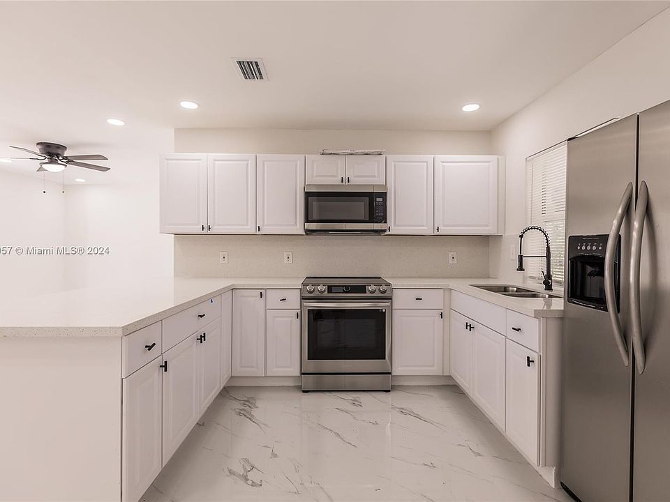 Beautiful Remodeled 4 bedroom 2 full bathroom with Private Screened Enclosed Pool and Patio area. BRAND NEW ROOF, Newly refinished diamond brite pool with mosaic pool waterline and step tiles, 24x24” PORCELAIN Tiles, New Fixtures, Ceiling fans, New Modern open Kitchen with Quartz Counter Tops and Backsplash and NEW AC and ductwork. Stainless Steel appliances, Fresh paint interior and exterior, plus 2 car garage. You'll have plenty of space to entertain your guests in the covered back patio while relaxing in the pool! The backyard is fenced in and has a direct access entrance to a walking trail..**NO HOA, The property taxes are very low which will result in lower mortgage payments**Won’t Last long, Move-in Ready!