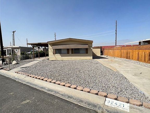 2 bedroom 2 bath mobile home on a 4,356 square foot lot. The interior has new paint, new flooring, remodeled bathroom, spacious living room, dinning area, good size bedrooms, inside laundry area, and a RV parking availability. Enjoy your morning and evenings on the relaxing front covered patio. The park is a 55+ community and offers many amenities such as swimming pool, spa, sports, clubhouse, and golf. Don’t miss out and take a look!