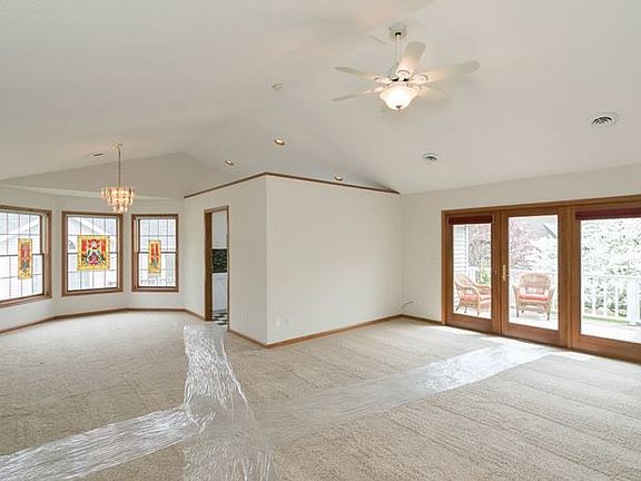 Bright & sunny 2nd floor Cayman Pointe Condo with views of trees & green space! Wonderful home offers comfortable convenient living within a secured building plus lots of style including 11 ft. cathedral ceilings; sweeping living rm & formal dining space; functional kitchen w/ white cabinetry, all appls, custom tile back splash & large dining area w/ vaulted ceiling; great Andersen window package; 10x15 deck w/ carpeting; 2 spacious BDRMS including a master suite w/ 6x12 closet & full bath w/ jetted tub.