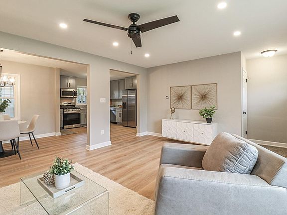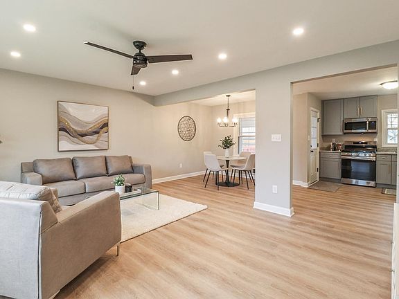 Modern rehab of this 1-story ranch feels like home sweet home. As you walk into this welcoming home, an open concept and large living room greets you with views of Kitchen and Dining Room area. For an active family, new luxury vinyl tile is in Living and Dining Room, Kitchen and 2 Baths. All 3 bedrooms and basement have the comfort and warmth of new carpet. New soft gray kitchen cabinets feature brush brass pulls/knobs, granite countertops, matt black fixtures and upgraded stainless steel appliances. The Main, 2nd and 3rd bedroom are all on the main floor, with a new full ceramic tile bath. The finished basement includes an expansive Recreation Room, Wine Cellar, and the 2nd full ceramic tile bath with linen closet, and a Utility/Laundry Room with washer/dryer hook-ups.An enclosed breezeway protects you and the family from the elements that link the 1 car attached garage and yard to the home. The yard is partially enclosed for your convenience.