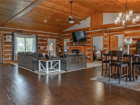 Immerse Yourself in Country Living! This 1890 Sq/Ft 4 Br, 2 Full Bath Log Cabin Sits on 5 Absolutely Stunning Acres. Fully Stocked 1/4 Acre Pond. Fish Until Your Hearts Content For Bass, Bluegill, & Catfish or Sit on Your 50X10 Covered Back Deck Drinking Your Morning Coffee, Watching Deer, Red Foxes, Turkeys & Bald Eagles Visit & Grab a Drink. Inside Are Tons of Updates. New Hardwood Laminate & Carpet Throughout Home. Kitchen, Hall Bath, Master Bath All Recently Updated. New Lighting. Pond Fountain Installed 2019. Cathedral Ceilings in Great Room & Master Bedroom. 9Ft Ceilings All Other Rooms. Barn Wired for Electricity, Not Active. All agents & buyers must sign Disclosure and Wavier prior to physically showing the property, due to COVID 19