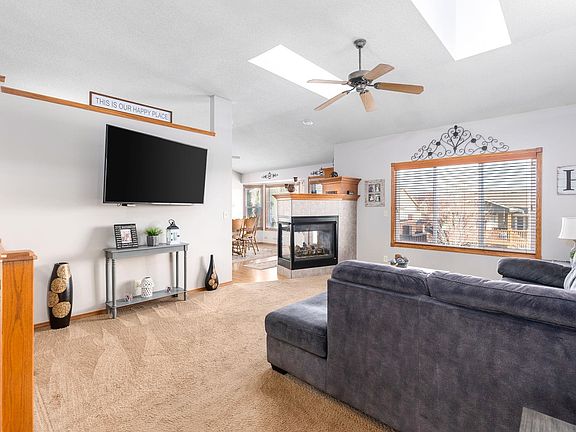 Welcome to this fabulous 4 bedroom home located in the Maize School District. This home is siting nicely on a corner cul-de-sac lot with mature trees, gorgeous landscaping, wood deck and patio. The design offers large windows giving natural lighting, plant shelves in the living room for decorating, a two way fireplace leading into the kitchen. In the kitchen you will find a large dining area with additional large windows, stainless appliances that remain with the home, a built-in desk, window over the sink, island with eating space and a pantry. The master suite is very nicely sized and bestows a bathroom with double sinks, a separate tub and shower and walk-in closet. There are also two additional bedrooms on the main level that are nicely sized as well. The finished basement is a walk-out at grade. You will love the large family room with view out windows. There is another bedroom and storage in the basement. Entertain or relax in the gorgeous back yard! Some information is estimated and cannot be guaranteed. Some of the pictures are from last summer to show the landscaping.