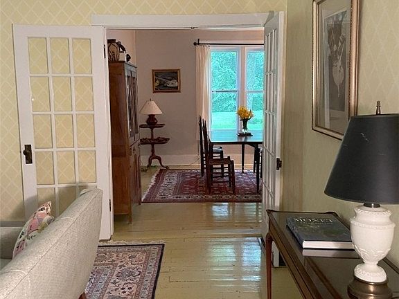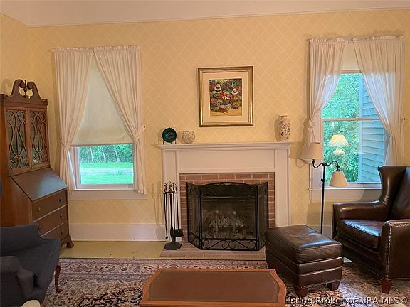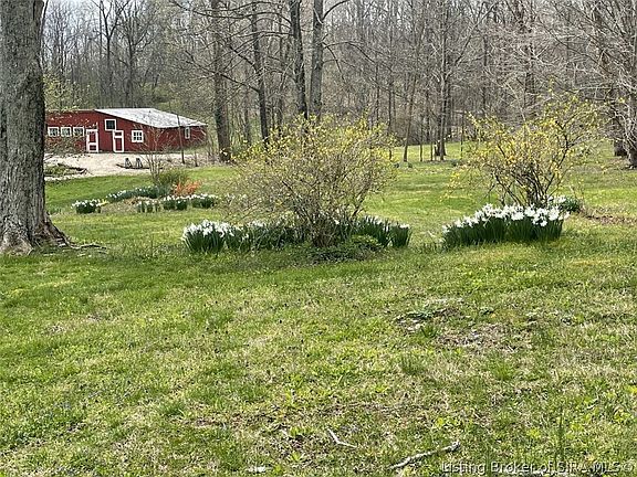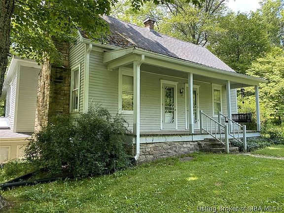 Historic home, 2 barns, one fully restored with 100 amp subpanel with 210 for welder, second barn a drive-in/drive-out machine shed, all on +/-4 acres selected from a 75 acre parcel. Built in 1913, house is eligible for placement on the National Historic Register. Located near Patoka Lake's Kings Bridge boat ramp. Year round spring branch onsite. Abundant wildlife. Great for hunting or nature lovers. Nestled in a valley, the beautifully landscaped home has an artisan, creekstone chimney. A screened-in back porch overlooks beautiful flower beds in a secluded park-like setting . The living room has a working woodburning fireplace with an antique mantel. Formal dining room. Walkout basement added in the 80s has a master bedroom and private bath with skylights and lots of windows. Second bedroom and bath on the main floor.