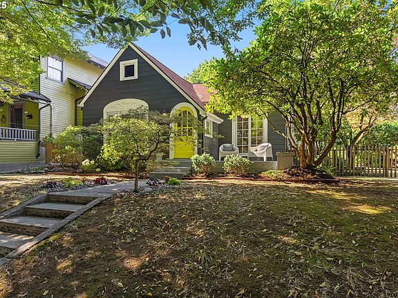 OFFER DEADLINE: 10/1/25 AT 11:00AM. Wishlist location! Nestled on a desirable corner lot beside the enchanting “Klickitat Alley,” this delightful cottage in historic Irvington offers storybook charm just two blocks from Irving Park. Inside, a warm and welcoming circular floor plan features newly refinished wood floors, a tiled fireplace, and a spacious dining room with original built-ins. The bright kitchen has a convenient mudroom that opens onto a back deck—an ideal spot to sip your morning coffee surrounded by romantic gardens.The main level includes two generously sized bedrooms and a full bath, offering comfortable living on one floor. Upstairs, the attic space—complete with skylight and wood floors—provides excellent storage or creative potential. The mostly finished lower level, with updated plumbing and electrical, includes a second full bath and flexible space, ideal for transforming into a family room or home office. A detached garage and carport offer ample off-street parking and plenty of room for gear and equipment. Don't miss this sweet little jewel box! [Home Energy Score = 1. HES Report at https://rpt.greenbuildingregistry.com/hes/OR10241916]