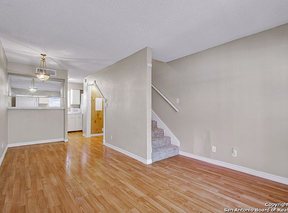 This northeast San Antonio condo offers tons of amenities for a great price. With one bedroom and one bathroom, this corner unit features laminate flooring throughout the first floor for easy maintenance. Included is the washer, dryer, fridge, microwave, stove and even covered parking. Enjoy the community pool on those hot summer days without all of the pool maintenance.