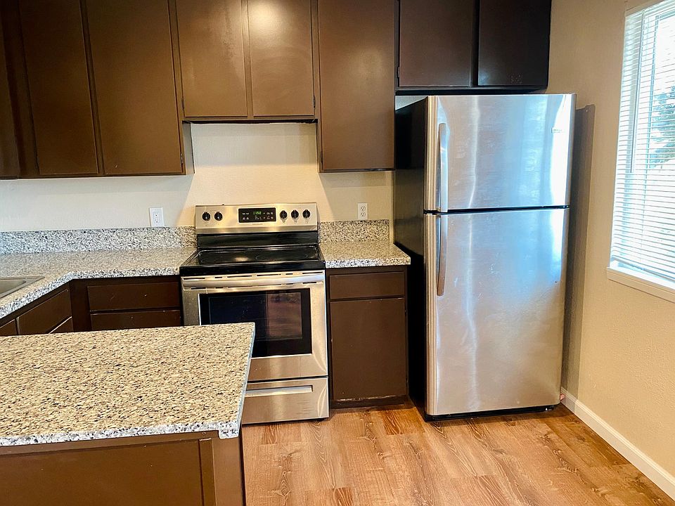 This darling 1 bed 1 bath apartment was recently updated and remodeled with vinyl plank flooring, granite countertops, stainless steel appliances, new light fixtures, a fresh coat of paint and trim, and new ceiling fans. This home comes with a wall AC unit to keep you cool on those hot days. The standing shower was completely refinished with beautiful tile, and the bathroom has a new vanity, sink, and toilet. This home has its own fenced in backyard for you to hang out under the shade of the trees. Home is located near downtown Paso, Georgia Brown Elementary, the fairgrounds, and lots of local wineries! The unit has its own storage closet and two parking spots. There is no washer/dryer on site. Contact us for more information! Owner pays for water and trash. Tenant pays for gas and electric. No smoking. NO PETS.