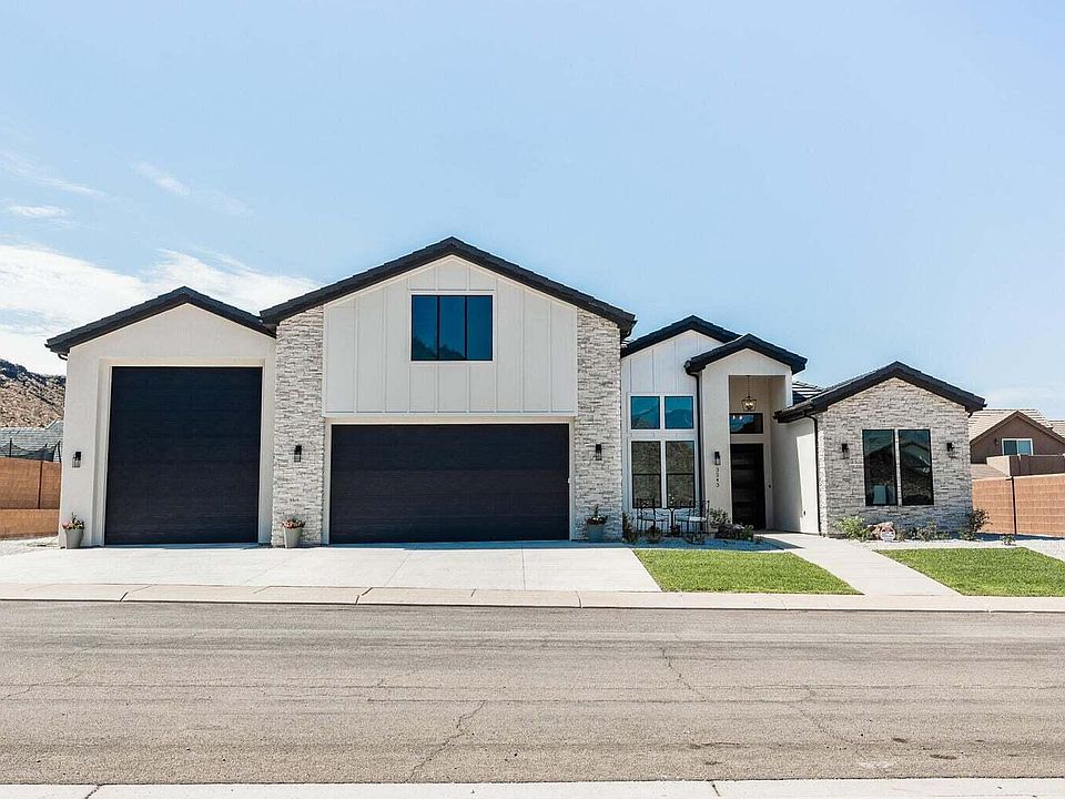 BRAND NEW HOME. We just finished this Modern Farm House Home is located in highly sought after Dixie Springs, a subdivision in Hurricane, UT & within minutes to Sand Hollow Reservoir State Park. Ride you ATV's right out of your driveway to the sand dunes or take you boat to the lake. A Custom built home with 5 bedrooms 3.5 baths, 3197 sq ft of luxury living with lots of details and extras. Enter into the home through the beautiful 4' wide 8'tall Iron door. Entry has 14 ft ceiling with black candle chandelier. Great room has large 3 windows, soffit box ceiling detail, fireplace with mantel. TV mount installed with cabinets & shelving on the side of fireplace. A Central Vacuum in wall system, downstairs and upstairs. Kitchen has accent lightening on top and under cabinet and which is so nice during the day and night, also has under counter power strips. The kitchen cabinets are white and the island is a gray stain and adds to the warmth of the kitchen and the great room area. The thick granite counter top and custom back splash complete the look with Stainless appliances. The induction range and double ovens make cooking a pleasure. Nice size pantry with a pivot door and an appliance shelf. A Breakfast nook area looking out the 2 large windows to back yard. The large Master bedroom has 2 large sliding windows. Master bath has free standing tub and faucet with a separate walk in shower and two separate vanities. The master bedroom has a walk-in closet, free standing tub and faucet. large glass shower with bench. Two other bedrooms have Jack and Jill bathroom. Bedroom near entryway is set up for an office or bedroom. The laundry room has plenty of counter space and has a ½ bath coming in from the garage which makes it handy while working or playing in the 2 car & 56'8" RV garage with a 12' x 14' door. This home was designed for the upstairs to be a 5th & 6th bedroom for a family or it can be used as a four bedroom home on the first floor and a casita/apartment upstairs. The upstairs has a separate entrance and lockable doors if a longer term rental is desired for extra income. The rentability has been verified with the City of Hurricane. Iron railing leads you to the upstairs to a large upstairs Casita style area with large bedroom & living room with its own private entry up the metal stairway outside in back as well as stairway from inside of the house. A washer & dryer room, full bath with shower. A mini kitchen area with cabinets, sink & a place for a mini fridge. A Storage closet or panty room located behind cabinets. There is also storage space under the stairs. Very nice concrete covered patio. Landscaping is completely done with timed irrigation and spotlighted plants. 14' side yard with lots of room for RV, boat or other parking also. Large back yard has room for a pool. Extra long 56'8" RV garage, for RV, Travel Trailer, boat & ATV's. The RV Garage has RV hookups inside garage for Sewer dump, 50 amp electric outlet and hose bib, a 220 v Electric car outlet. The double garage is extra long & 9' tall and allows for trucks & cars. 2 water heaters with circulating pump for instant hot water.