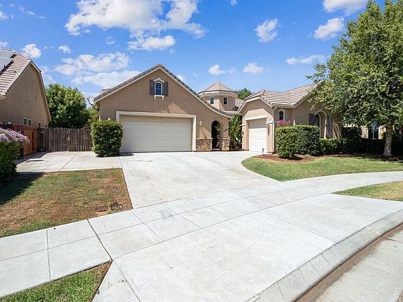 This immaculate 4-bedroom, 3-bath Leo Wilson home has so much to offer! The home features a formal dining area and a large great room. The spacious kitchen offers an open concept design and breakfast nook. This split floor plan offers a huge master bedroom with a sitting area. The hallway down the master bedroom has two separate walk-in closets followed by a substantial master bathroom with two sinks and a soaking tub. Two bedrooms are separated by an adorable Jack and Jill bathroom. The fourth bedroom is at the front of the home and can also be made into an office space or den. The backyard has a gorgeous built-in fireplace, grilling station and custom-made pergola. Beautiful pool with waterfall. RV/boat parking with plenty of room on the side of the house. Three car garage is a 2/1 split with storage and shelving. It is located in a quiet cul-de-sac within walking distance to Clovis East HS, Reyburn Intermediate and Reagan Elementary. It is a must-see-in- person.