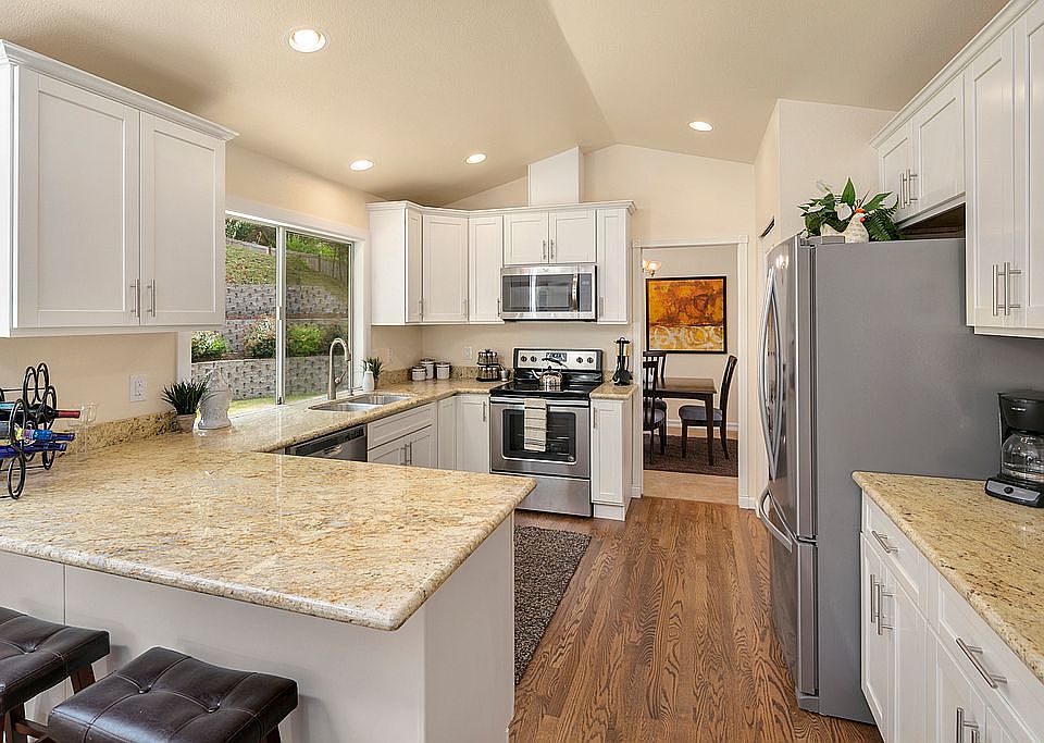 Remodeled home on quiet street surrounded by other great homes in an established neighborhood. This beautiful home features a formal dining & living room, extra large family room with french doors leading to the patio. Light filled kitchen with vaulted ceilings. Upstairs master with fantastic master bath, as well as 2 additional bedroom and a shared bath! Bedroom #4 is downstairs and a downstairs bathroom & Shower! Home sits on a large lot that backs to a private area. Must see home!