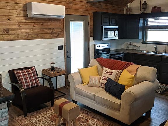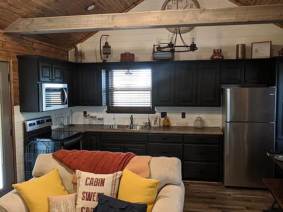 Rustic/modern cabin. Built in 2018, sat vacant until bought on 12/13/19. NO LAND!!! Had moved onto property, lived in 3 weeks and selling due to unforeseen circumstances 34X16X14 total 554 Sq Ft. All appliances are Whirlpool. Washer/dryer, microwave, refrigerator icemaker, stove/oven. Heavy insulated tilt able windows. Barn slide door for washer/dryer space. Big kitchen with a lot of cabinet space. Brand new Ashley Table and Chairs with tags still attached. Everything in pictures goes. Cabin came furnished. No bed. Plumbed with extra hot/cold line to go. Also has 4 tie downs that will go with it. Local mover backed it right into place. Have contact info for him as well.
