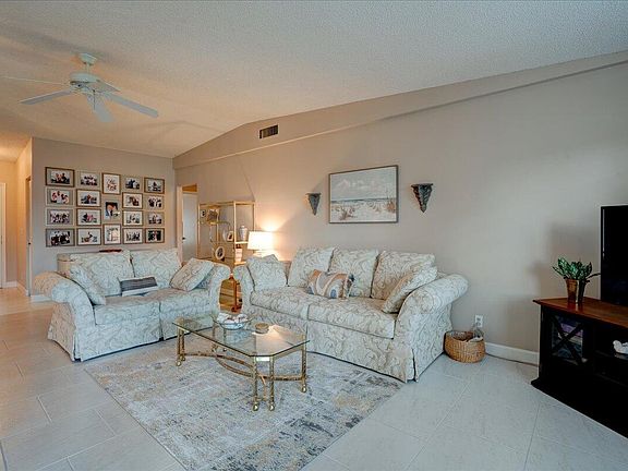 Lovely move-in ready fully furnished condo * BRAND new central a/c * Relax on the nice covered, screened porch overlooking pond & fountain * Full size washer and dryer in unit * Skylights in both bathrooms for bright, natural light * Walk-in closets in both bedrooms * Second floor unit with spacious vaulted ceilings and NO neighbors above you! * This building was painted and got a new roof in 2023! * Condo fee includes bldg maintenance & insurance, cable, internet, & water * Park Pointe is a beautiful, well kept, lushly landscaped, 55+ community w/pool, tennis, pickleball, clubhouse & more * There are NO buildings over 2 stories in Park Pointe, therefore the costly, mandatory state inspections, specifically for condos 3+ stories do not apply here * Large eat-in kitchen with pass-thru to dining room, pantry, and an exterior atrium window for your plants * Porch has vinyl sliders & pull down storm shutters * All tile / laminate floors throughout - no carpeting * Decorative sliding doors leading to porch *