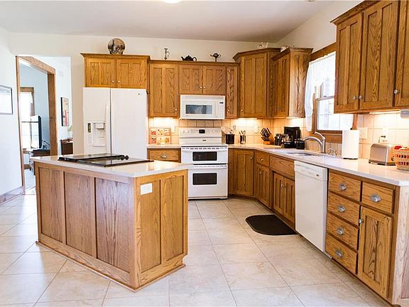 You'll love this gorgeous 1.5 story home with 40 acres on blacktop! Main level features big kitchen/dining combo with solid surface countertops, Jenn-Aire stove + double oven, island, pantries, & custom shaker cabinets. Formal dining is perfect size for a large farm table & has wood floors. Main level master also has a private small office (could be nursery). Huge master bathroom with tile floors, soaker tub, his/hers vanities and big walk in closet! 30x40 residential outbuilding, concrete & electric. Pond! Upstairs you'll find 4 LARGE bedrooms, 2 full baths, & an emergency exit! The WO bsmt has a finished family room with wb fireplace, a full bath, another garage, and TONS OF STORAGE ROOMS....which could be finished for more space if needed! Another large patio at the walk out. Ground Source HVAC.