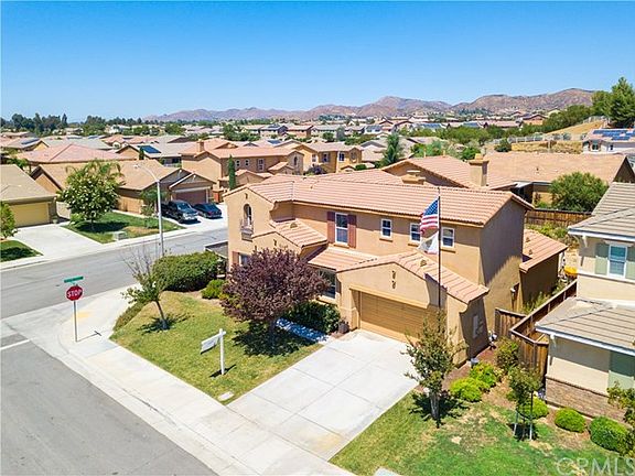 Don't miss out on this opportunity to own a home on the west side of Murrieta/Wildomar border which is close to everything! Sellers are original owners of this large corner lot home. 5 bedrooms, 3 1/2 bathrooms and 2-car garage. This home greets you with a formal dinning room to your right and main floor bedroom to your left. The main floor also offers a half bath, formal dining room, gracious family room with fireplace and media niche and large family kitchen with island and walk-in pantry. Upstairs is the master bedroom with walk-in closet and master bathroom with his and her sinks and separate soaking tub. This one of a kind home has a secluded court yard including a fireplace that opens to a indoor grill area/foggia and kitchen area perfect for entertaining. Large pool sized backyard ready to be utilized to your personal liking. Talk about entertainment home!