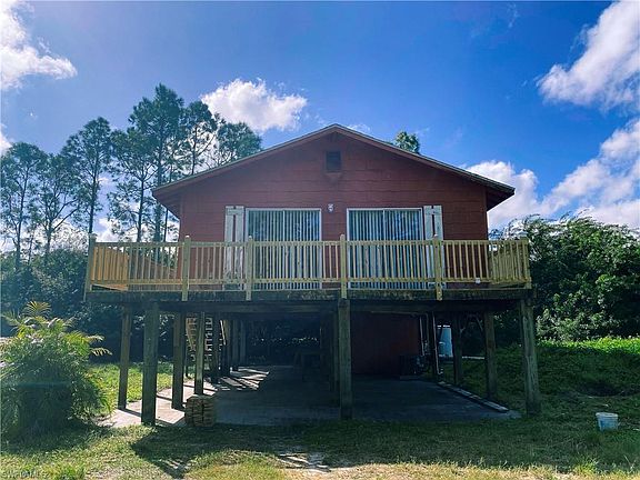 Nice, newly-remodeled Stilt Home on 2.5 acres near the Babcock National Wetlands in the beautiful Charlotte County countryside. The main entrance to the home is surrounded by a wrap-around deck with solar evening lighting. The living room is complete with a sliding door to the deck, where you can sip your morning coffee or gaze at the night sky. The Kitchen and Bathroom include new cabinets, fixtures, and flooring throughout. The home also contains a new refrigerator, stove, furnace, air conditioner, and water heater for your enjoyment. The current owner is still upgrading some of the homes exterior, including replacing some of the siding, shutters and trim, improving the shed under the house, and adding a shelter for the new well equipment in the yard. All of these upgrades, including painting the exterior with quality Behr paint, will be completed shortly, well before Closing. This is quite a peaceful community, and the 2.5 acre parcel gives you lots of future possibilities. Pool? Horses? Barn for your toys? The sky is really the limit! Please come out and picture yourself living in this quiet natural setting!
