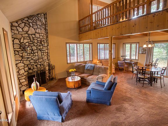 On the golf course of White Mountain Country Club in guard gated White Mountain Summer Homes. 5th Fairway. .48 acres. 1278 sf. 2 bedrooms, 1.5 baths plus a spacious loft. Covered deck and uncovered balcony w/ great views of the golf course. 1 car garage was enclosed into a laundry storage area. Vaulted ceilings, interior wood ceilings, wood flooring in kitchen and hallway.