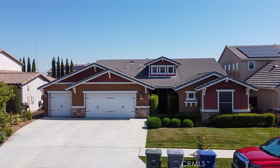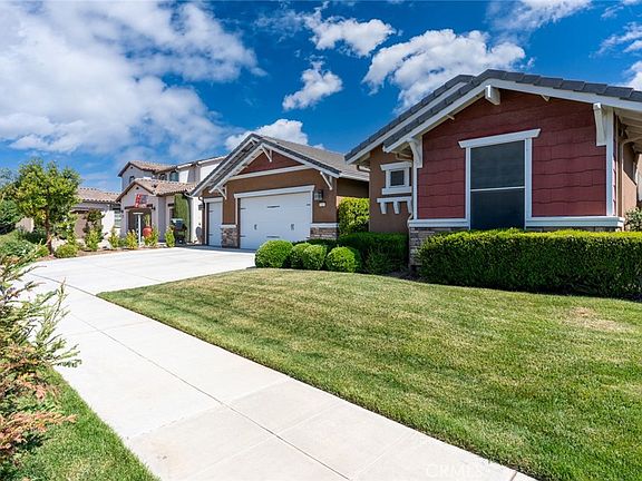 Former Florentine Model Home in a Prime Cul-de-Sac Location! Welcome to this beautifully appointed single-story home by Century Communities, nestled in a quiet and sought-after cul-de-sac. This former Florentine model home offers 3 bedrooms, 2.5 bathrooms, and a versatile den with French doors leading to the backyard—perfect as a home office, gym, or bonus space. Step into the elegant formal dining room, ideal for hosting special occasions, and gather in the spacious great room complete with a ceiling fan. The chef’s kitchen is a standout with granite countertops, a decorative tile backsplash, stainless steel appliances, and a breakfast bar. The primary suite is thoughtfully located apart from the secondary bedrooms, offering privacy and tranquility. It features dual vanities, a separate soaking tub and shower. The two additional bedrooms are connected by a convenient Jack-and-Jill bathroom with dual sinks. Enjoy the convenience of an indoor laundry room with built-in cabinetry, and a fully finished 3-car garage that is insulated, textured, and painted. Step outside to the beautifully landscaped backyard with mature plantings, potted greenery, and extended concrete patio. This home is a rare blend of comfort, functionality, and thoughtful upgrades.