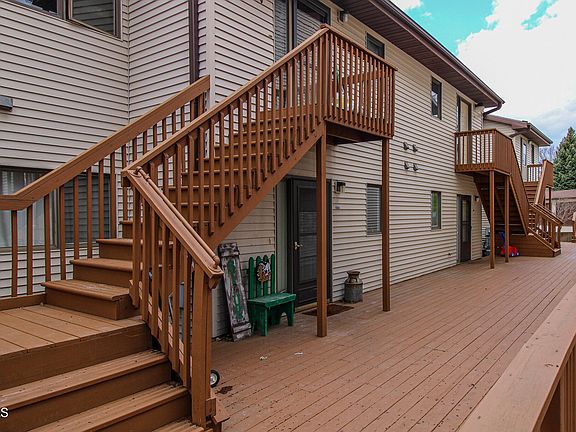 Welcome to this affordable North Bismarck Condo, nestled in a secluded treed development. (Low maintenance living)! Open concept layout. Kitchen has an eat-in island, wood cabinetry, double sink, and stainless steel appliances. Adjacent is the dining area, and sunny living room with white built-ins that leads to a walk-out deck with nature views. Hallway has laundry, Bedroom #1, Bedroom #2, and Bathroom #1. Lower level welcomes a second living room, Bathroom #2, Bedroom #3, Bedroom #4 (non conformting), and storage/utility room. You'll love the deck spaces and quiet scenic neighborhood. Move-in ready! HOA takes care of lawn care and snow removal. Enjoy easy living! Schedule a tour with a Realtor now.