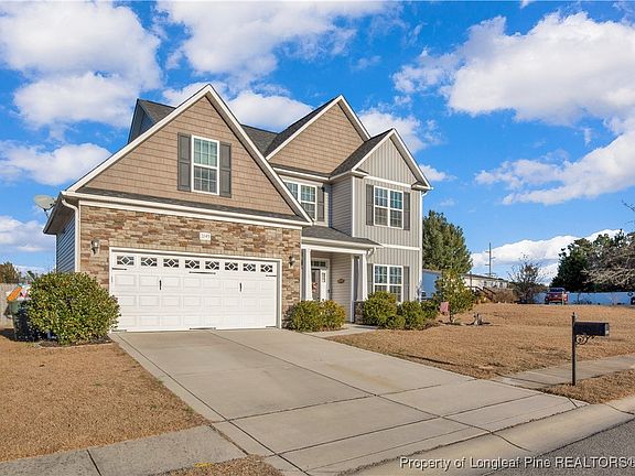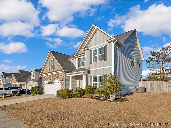 Welcome to your new home! When you enter the foyer of this gorgeous home, you are able to tell right away it has been well kept. This home features a fenced backyard and spacious covered patio with extended concrete making this area perfect for those outdoor events. Upstairs, all bedrooms await, including a primary suite with a large bathroom, separate shower, soaking tub, and walk-in closet. Laundry is located upstairs. Downstairs offers an open-concept living and dining area, perfect for entertaining. The kitchen offers granite countertops and stainless steel appliances. Move-in ready!!! The home is located on a cul-de-sac, and community is one way in and one way out. A prime location in the desirable Jack Britt School district makes this home an exceptional choice. This home has two separate heat pumps one for upstairs and one for downstairs. The wooden playground set to convey with property. Don't miss out on this rare opportunity!