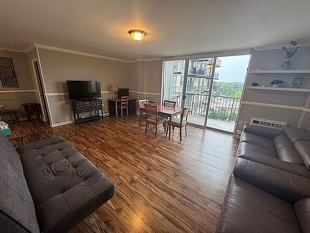 This 2-bedroom, 1-bath condo offers 894 sq. ft. of living space on the 7th floor. Large windows bring in natural light, and the private balcony adds extra room to relax. The layout is practical, with laminate floors throughout.