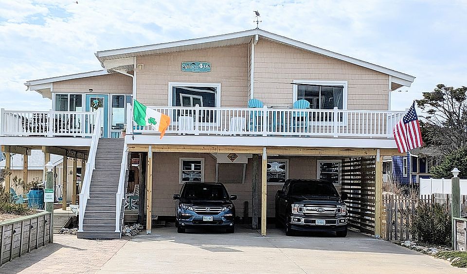 Beach Home Across Street From Ocean with beach access steps away - Great Ocean Views - Lot 100 X 140 - T&G Wood Vaulted Ceilings - Decks and stairs replaced in 2023, maintenance-free composite and vinyl railings - Roof & skylights replaced in 2020 - Climate controlled sunroom conversion in 2021 - Trane heat pump / A/C installed 2019 - 1-bedroom, 1-bath "In-Law" apartment on the first floor remodeled in 2022 with individual rental potential - hardwood bamboo floors through 2nd floor in 2018 - Windows Replaced 2014 - Kitchen Remodeled 2013, New Appliances 2020 - 2 Sheds - Extra Wide Paved Parking Area - Large upper deck and lower covered deck.
