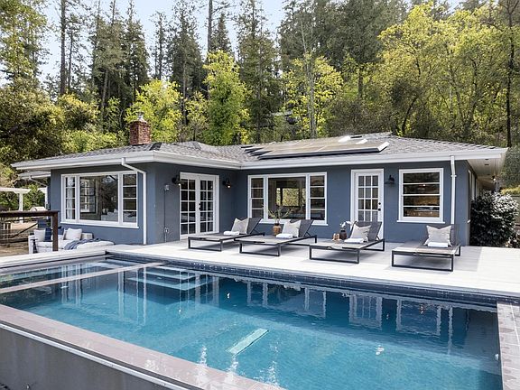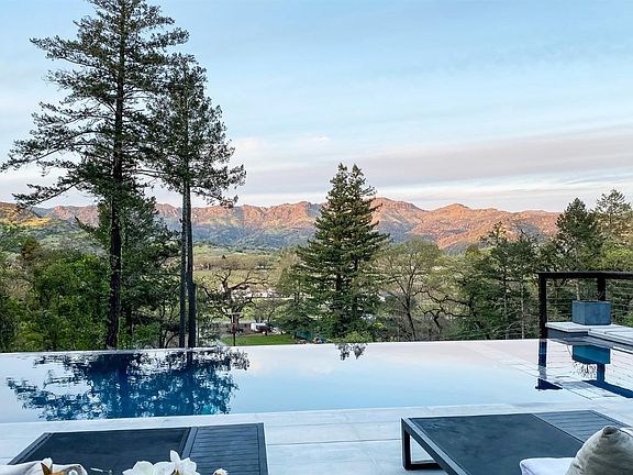 Sweeping vineyard views, embraced by oak studded mountains, anchor the easy-going elegance of this polished Wine Country compound, minutes from the Historic Spa Town of Calistoga. The forthright design & indoor/outdoor connectivity of this sprawling, one-level residence is enhanced with uncompromising quality & a something-for-everyone ethic. The infinity pool & spa are crowning features, set on a deep patio literally projected into the sky from which to experience changing light. Hardwood flooring & handsome wood burning fireplace warm the interiors, while glorious light & views pour in from large windows. 3 bedrooms, 2 full baths, expansive living & dining spaces take full advantage of the vineyard views, spread out like a magic carpet on the valley floor. Like a sophisticated private spa, tailored patios, fragrant gardens, winding paths, groves of olives & lavender guide exploration of the surrounding nature. Alive with opportunities for large scale entertaining, work & play, the property includes a useful barn, detached modern office, gazebo with outdoor dining & fireplace, ping-pong pavilion. Smart house features: Tesla Power Wall, owned solar, Smart Pool Controls, Nest Thermo, Auto Irrigation. Swim, stroll, hike, work, dine, shop...just minutes from world class wine venues.